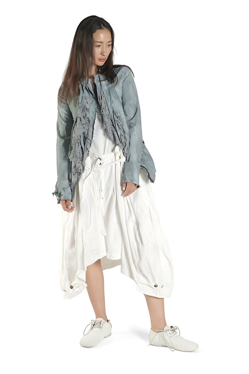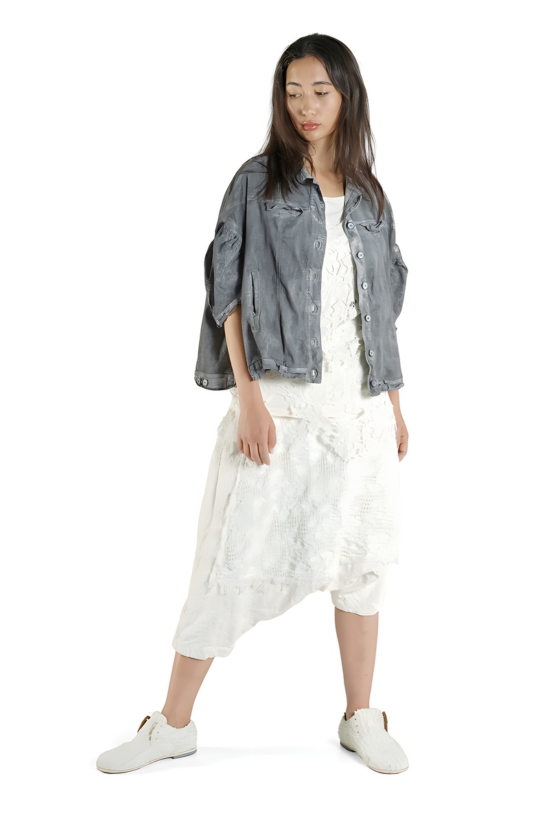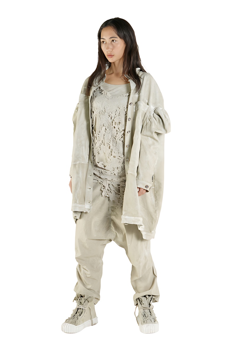 Une touche d’extravagance en plus que la gamme principale, Dip expérimente les nouvelles technologies et innovations en matiere de coupes mais aussi de teinture, d’assemblage et de finition de chaque article rendant chaque pièce quasi unique.